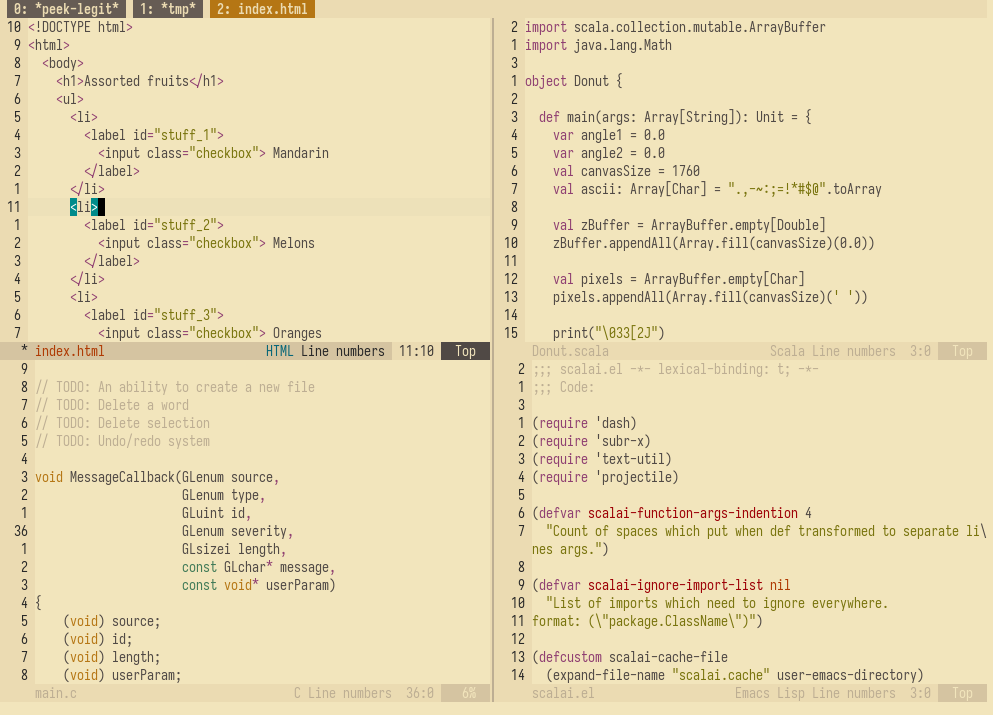 - (lang)-mode - Basic programing language support (indentation, syntax highlighting)