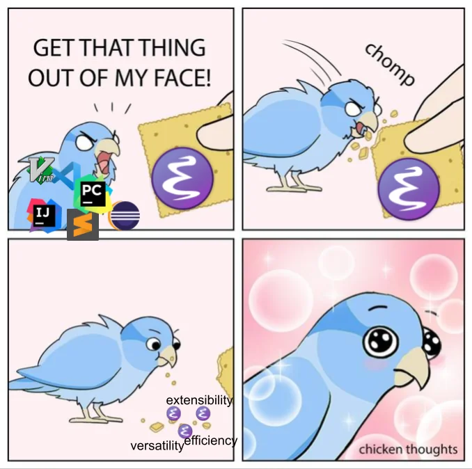 IntelliJ IDEA Eclipse IDE DBeaver Java Scala Vim Emacs Doom Emacs Magit Dired Restclient Org-mode Evil-mode Minimal Emacs Reddit ProgrammerHumor